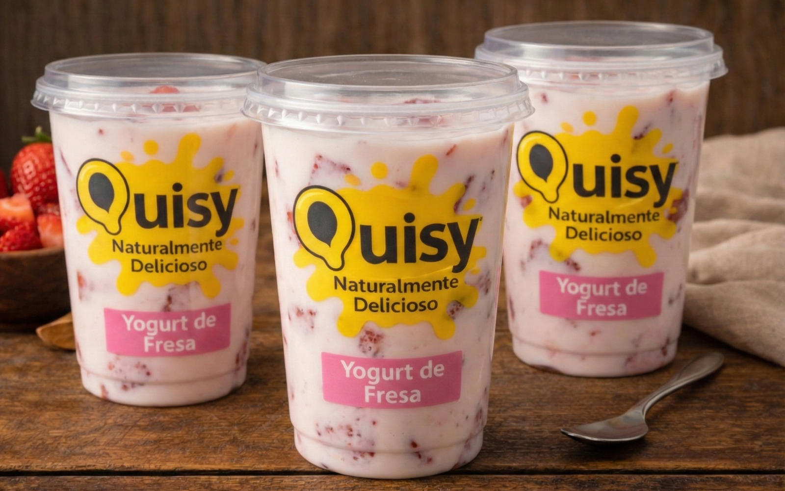 Nuestro yogurt Quisy está elaborado con leche de alta calidad y frutas naturales, ofreciendo un sabor delicioso y refrescante.